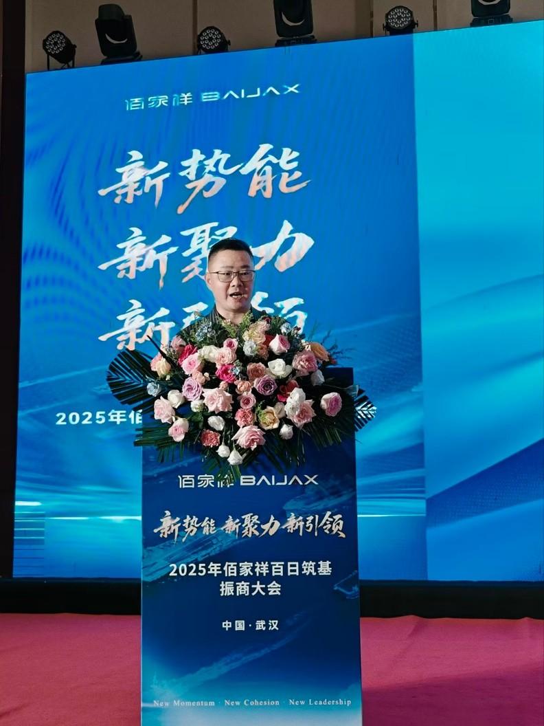 大会在激昂的氛围中拉开帷幕。佰家祥国内事业部总经理姜亚文姜总代董事长郭家海在致辞中深情回顾12年创业历程,强调“让经销商好经营,让消费者享品质”的初心从未改变。站在“生日新起点”,姜总郑重宣布“百日筑基振商”战略全面启动。他详细阐述了未来战略方向、总部扶持政策与市场布局新动作,以实打实的规划为经销商注入“定心丸”。这份致辞,不仅是对过去的总结,更是佰家祥面向全国经销商伙伴掷地有声的“承诺书”,承诺将携手共进,共享发展红利。